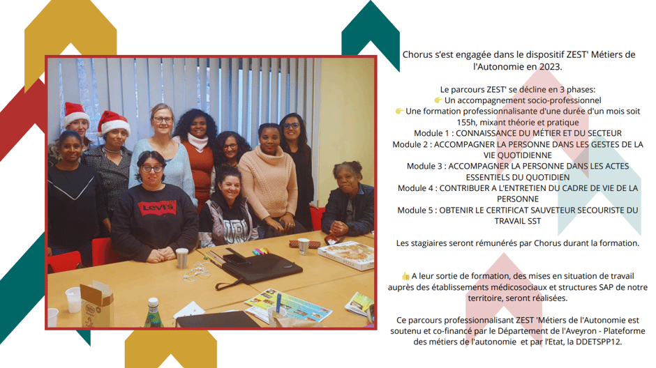 Formations · 07. octobre 2024 Chorus - Espace Actus Formations La Reconnaissance des Savoir Professionnels (RSFP) ZEST' Métiers de l'autonomie Vous trouverez régulièrement dans cet espace nos offres de formation. N'hésitez pas à les consulter, à postuler, à nous contacter. A bientôt L'équipe de Chorus tagPlaceholderCatégories :